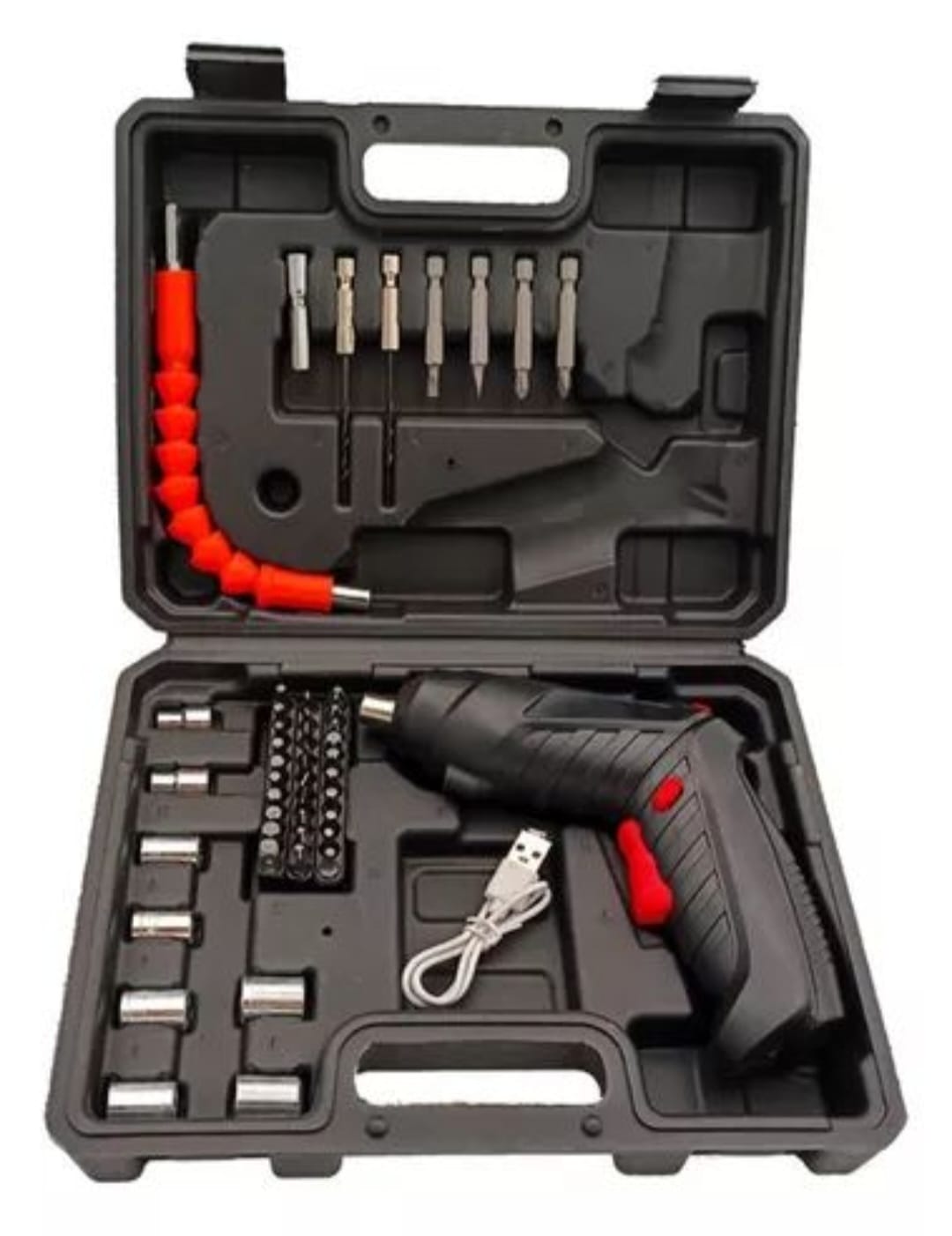 Incluye puntas de destornillador y un cable USB para una carga rápida y sencilla, lo que lo convierte en un aliado indispensable en cualquier hogar o taller. La batería de litio garantiza una larga duración, permitiendo trabajar sin interrupciones. Su encastre de 1" facilita el cambio de puntas, adaptándose a diferentes necesidades de atornillado.
