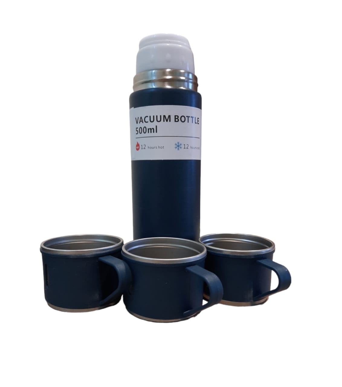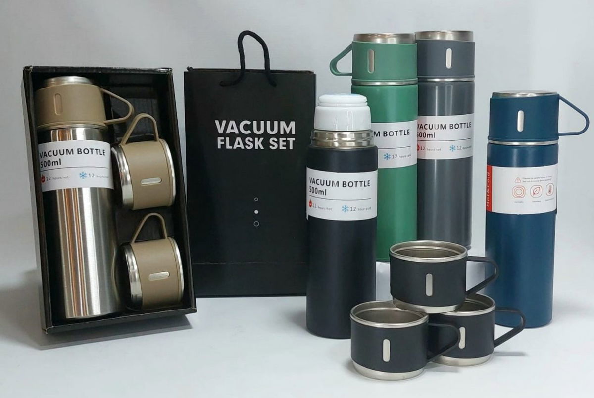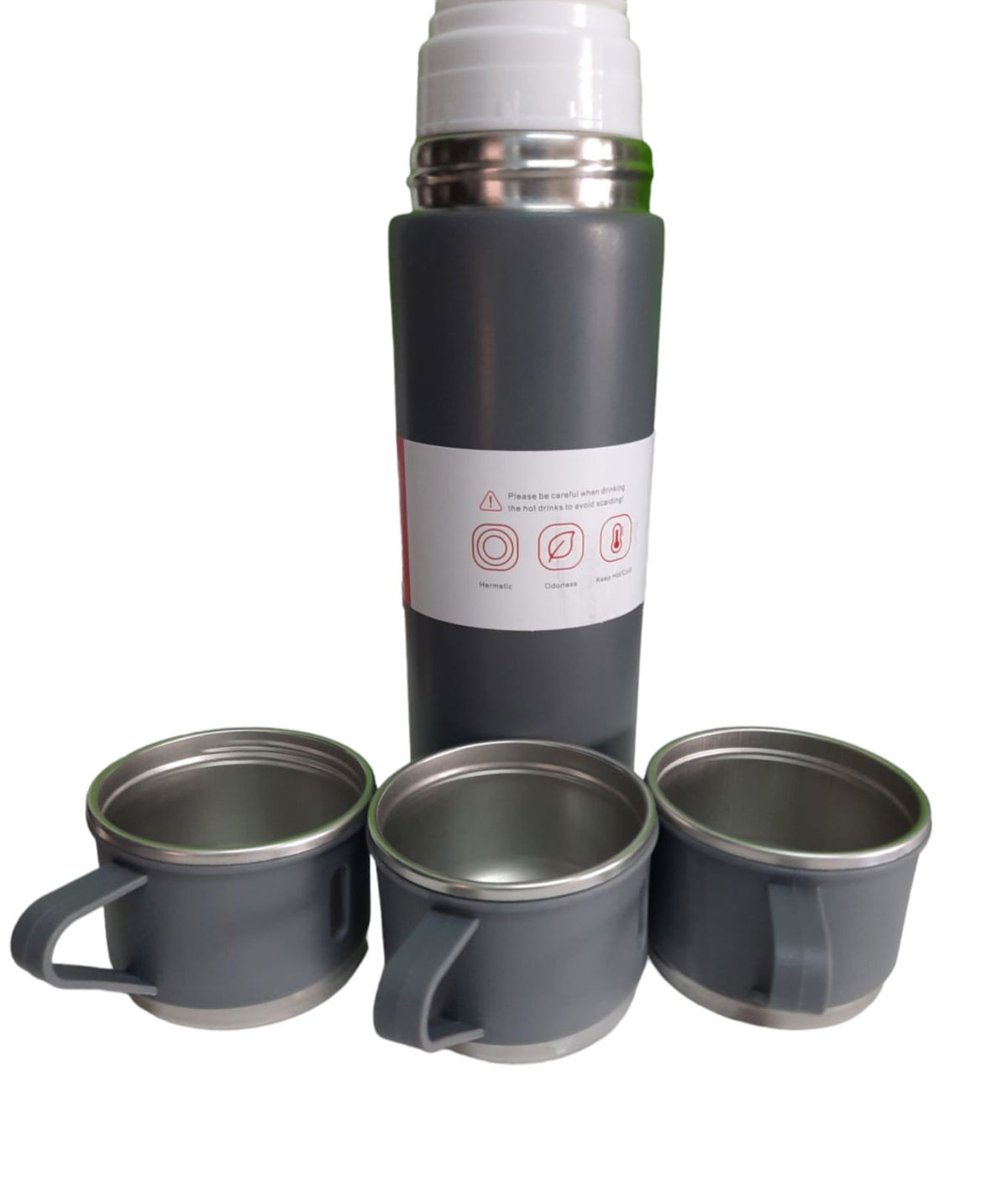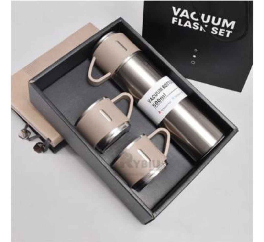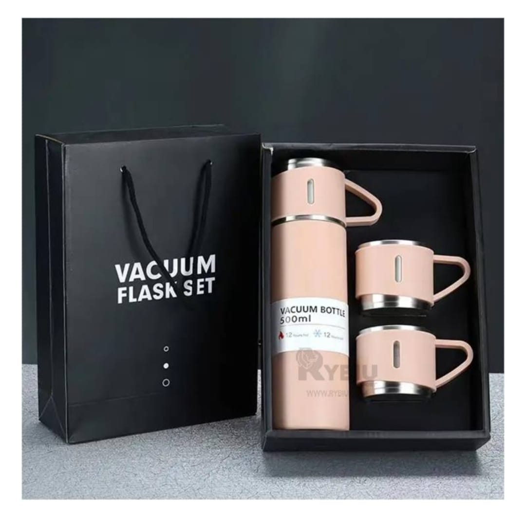 "Termo 480 Ml" en caja , CON TRES TAZAS Y BOLSA DE REGALO