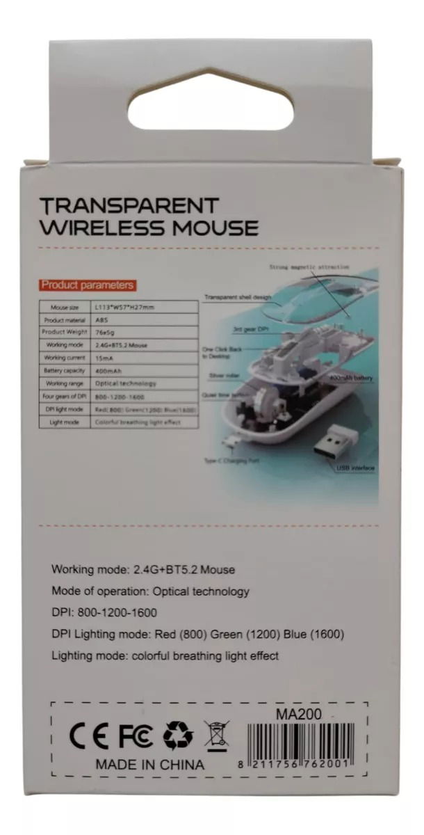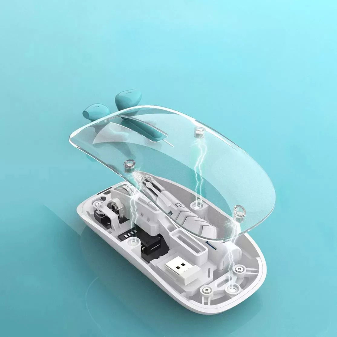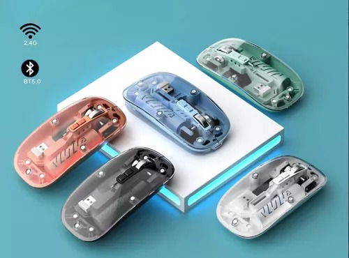 MOUSE INALAMBRICO RECARGABLE TRANSPARENTE BLUETOOTH: CONEXION BLUETOOTH Y CONEXION ADAPTADOR 2.4G