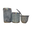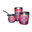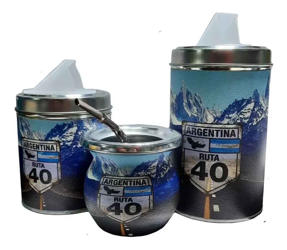 El set incluye: Mate de Plastico con bombilla, yerbero y azucarero, ambos con pico de plastico revarible.